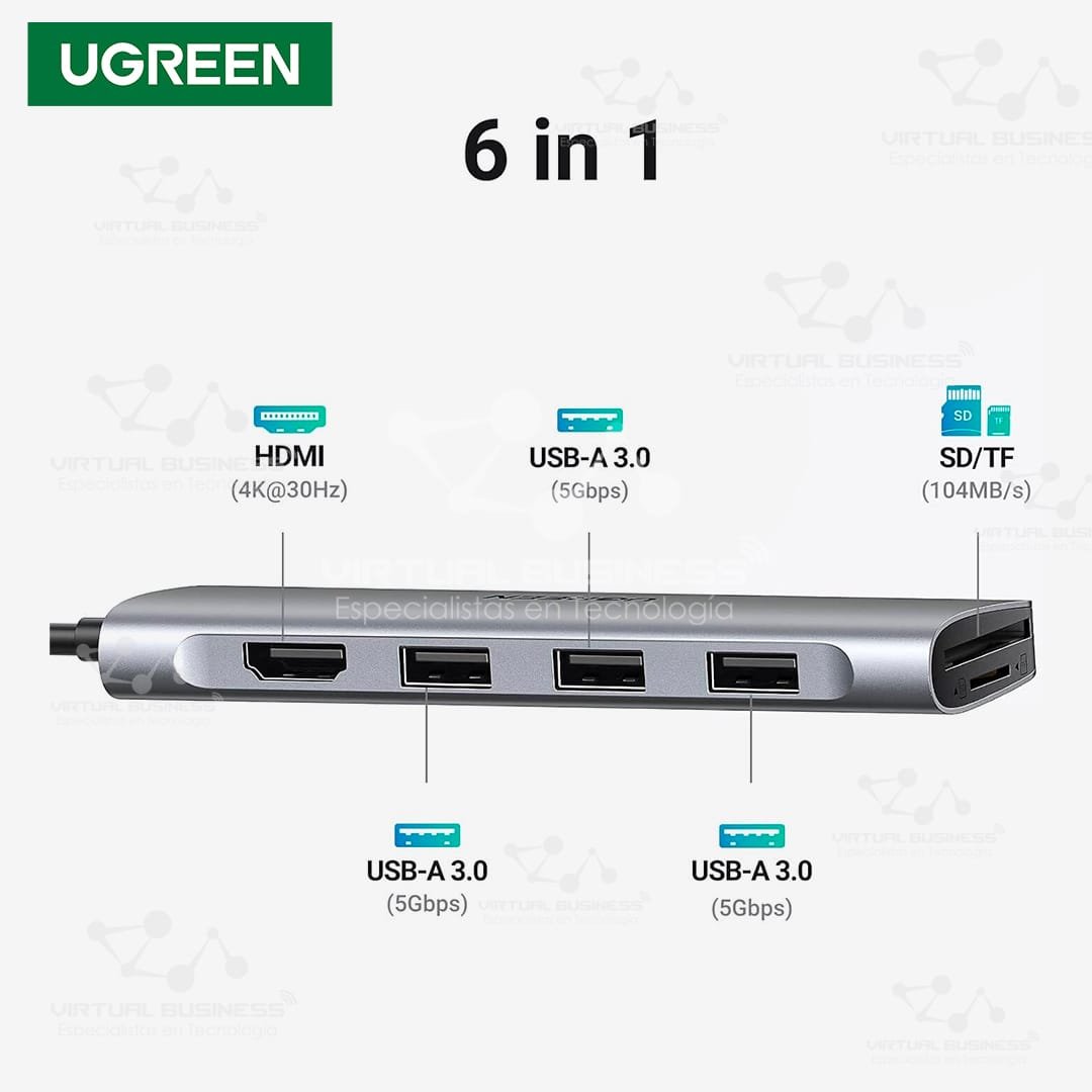 Adaptador UGREEN HUB Tipo C 6 en 1 CM511 20956: Versatilidad y Eficiencia en un Solo Dispositivo