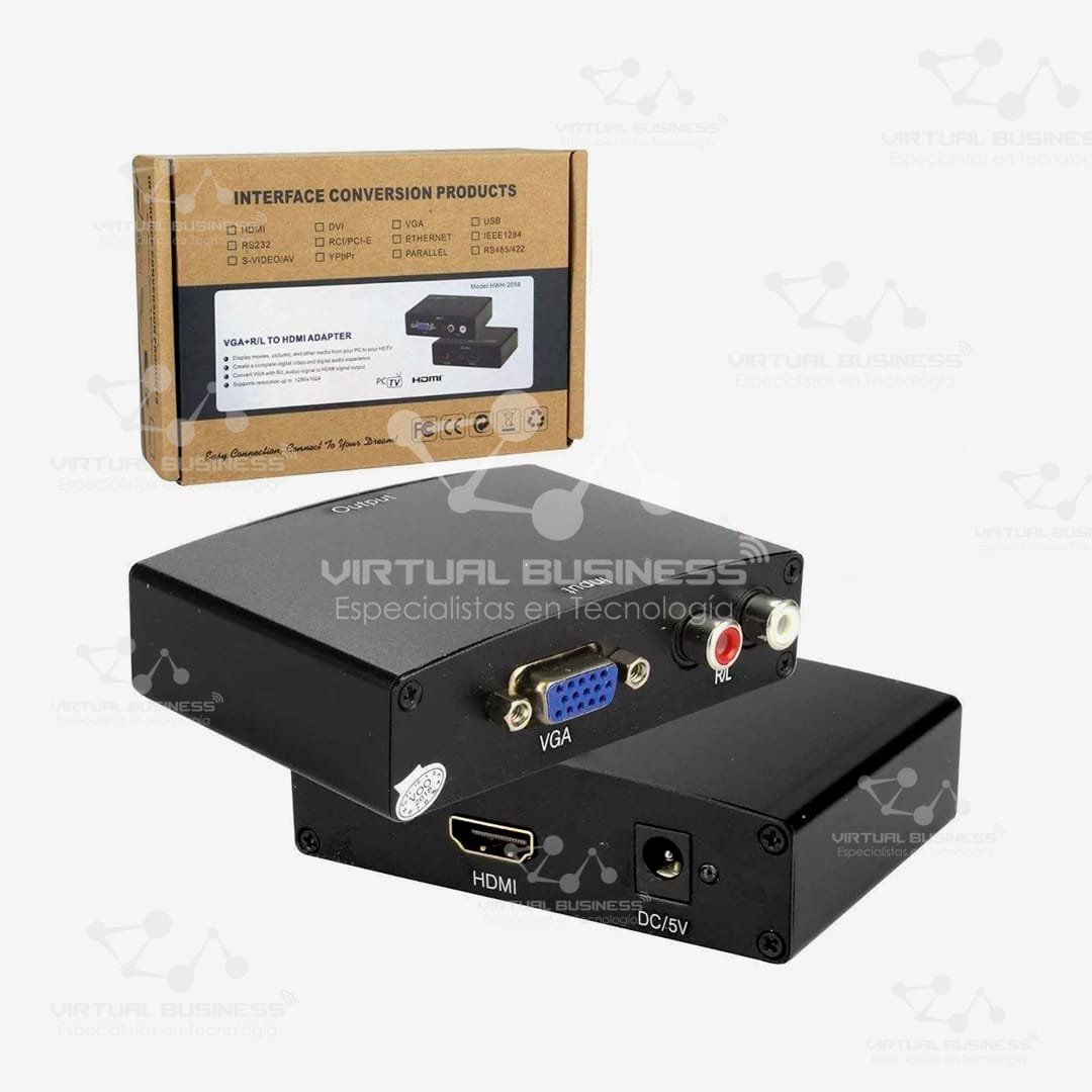 - Conversión de Señal Completa: Transforma señales de video VGA y audio analógico (R/L) en una señal HDMI unificada, permitiendo transmitir audio y video simultáneamente.