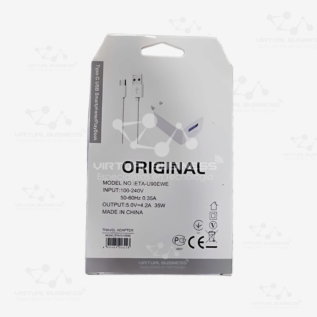 El Samsung ETA-U90EWE es un cargador de pared original diseñado para ofrecer una carga eficiente y segura. Este adaptador es ideal para usuarios que buscan mantener sus dispositivos siempre cargados, ya sea en casa, en la oficina o mientras viajan. Gracias a su potencia de salida de 2A, proporciona una carga rápida y confiable, perfecta para dispositivos Samsung y otros compatibles.