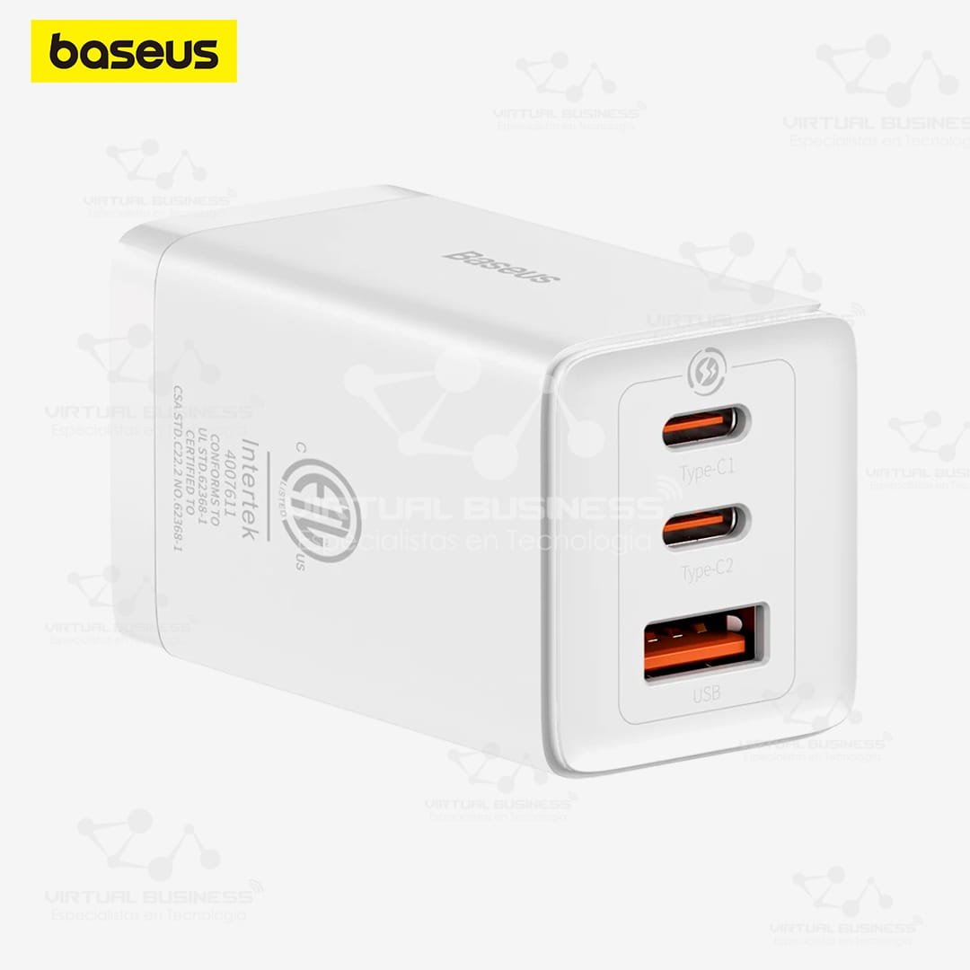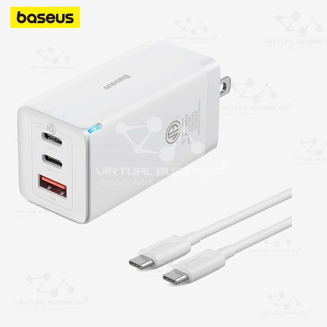 El Cargador Rápido Baseus GaN5 Pro 2C+U 65W Blanco es la elección ideal para quienes buscan un cargador versátil, potente y con un diseño moderno. Gracias a la tecnología de nitruro de galio (GaN), este dispositivo ofrece una carga rápida y eficiente en un formato compacto, perfecto para múltiples dispositivos.