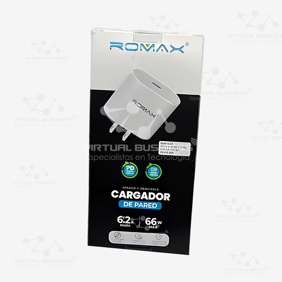 El Romax TCC0240 es un cargador de pared diseñado para ofrecer una solución confiable y eficiente para cargar dispositivos móviles. Con una potencia de 67W y sistemas avanzados de protección, este modelo combina tecnología y seguridad, siendo ideal para usuarios que buscan optimizar el tiempo de carga.