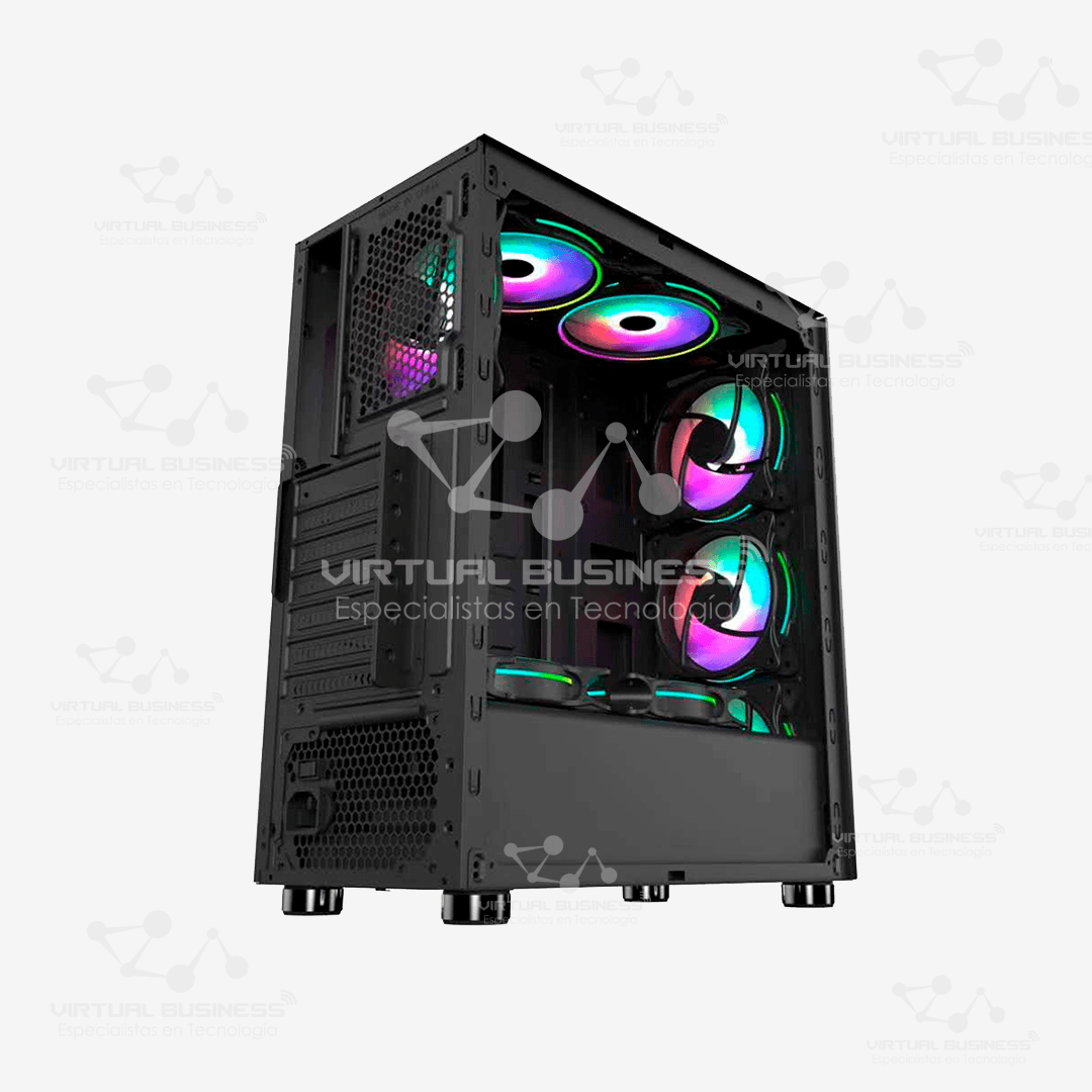 El V3-A Negro presenta un diseño elegante y robusto. Su construcción en acero SPCC de 0.5 mm asegura durabilidad y una larga vida útil, incluso si el case se somete a uso intensivo. El diseño minimalista en negro lo convierte en una opción atractiva para cualquier setup gaming o profesional.