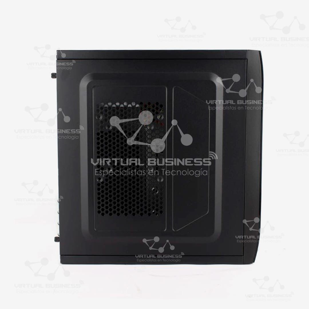 El panel frontal del case cuenta con dos puertos USB 2.0 y conectores de audio HD, facilitando la conexión de periféricos y dispositivos externos. Incluye una fuente de alimentación de 600W, proporcionando una solución integral y lista para ensamblar.