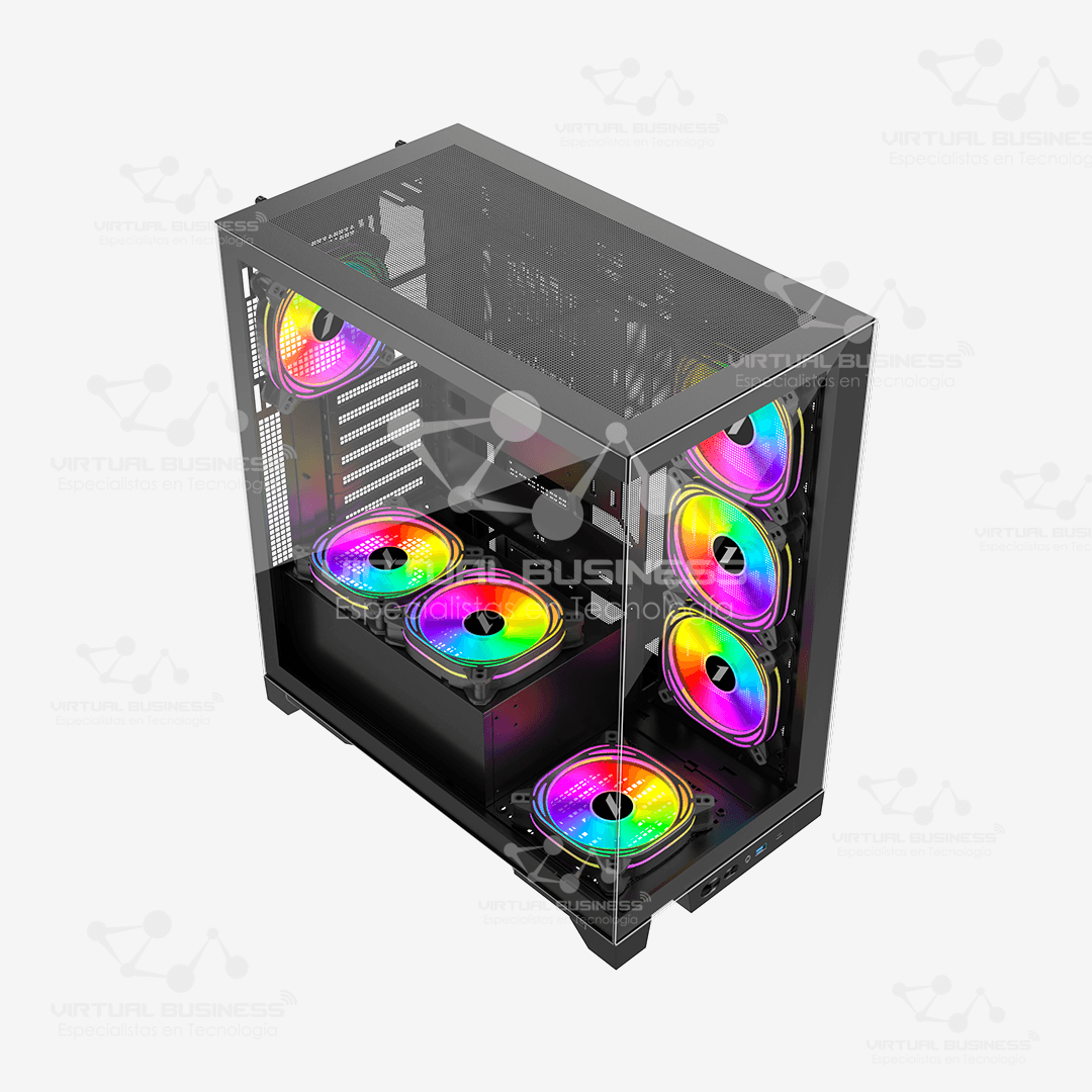Este case está diseñado para soportar un sistema de refrigeración eficiente, con capacidad para instalar varios ventiladores y sistemas de refrigeración líquida. Esto garantiza que los componentes se mantengan frescos, incluso durante largas sesiones de gaming o uso intensivo. Además, la gestión de cables está optimizada para mantener el interior del case ordenado y mejorar el flujo de aire, lo que contribuye a un rendimiento térmico superior.