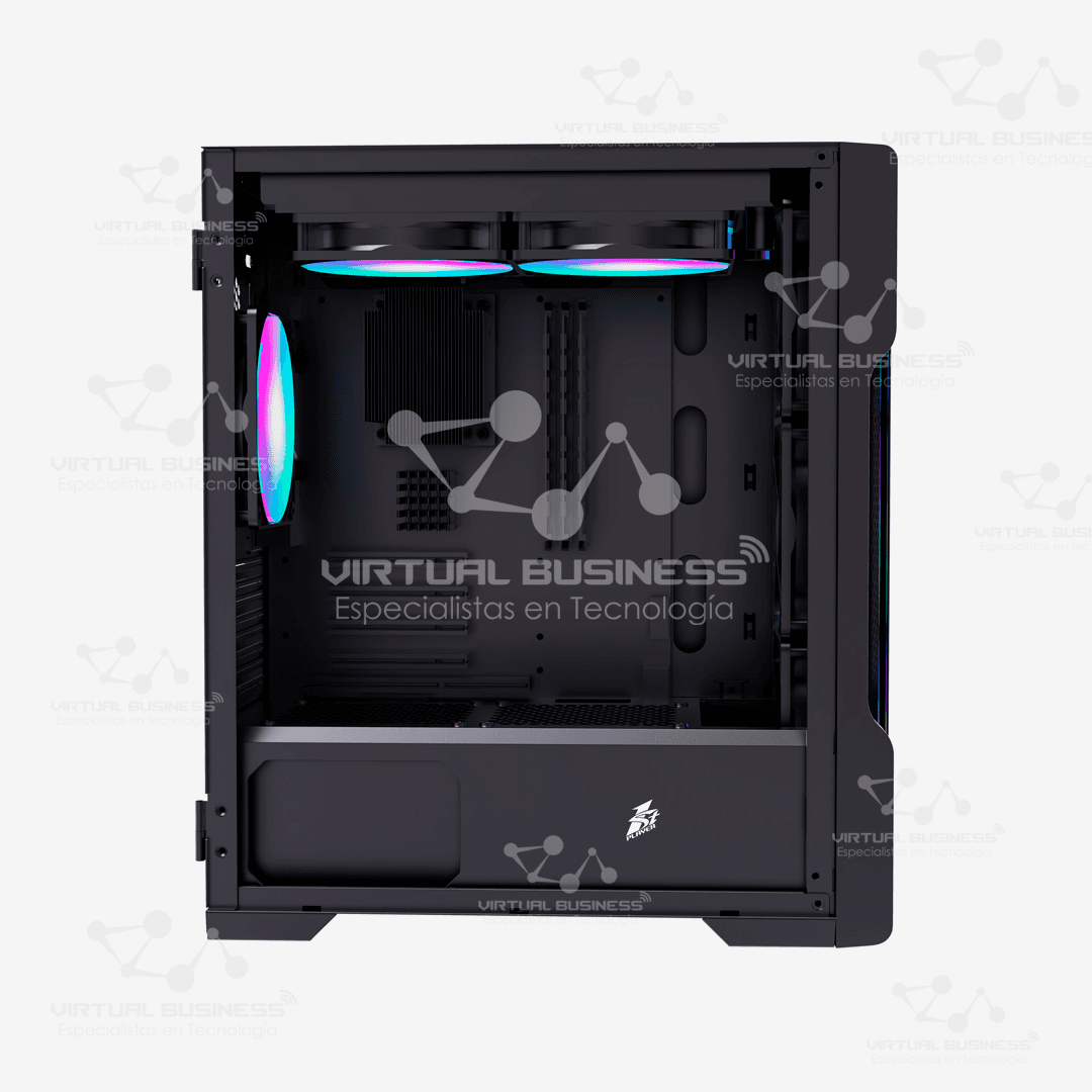Este case está optimizado para mantener un flujo de aire eficiente. Ofrece espacio para varios ventiladores y es compatible con sistemas de refrigeración líquida, lo que asegura que los componentes se mantengan frescos incluso durante largas sesiones de gaming. Además, su gestión de cables permite mantener el interior del case ordenado, lo que mejora tanto el flujo de aire como la estética interna del equipo.