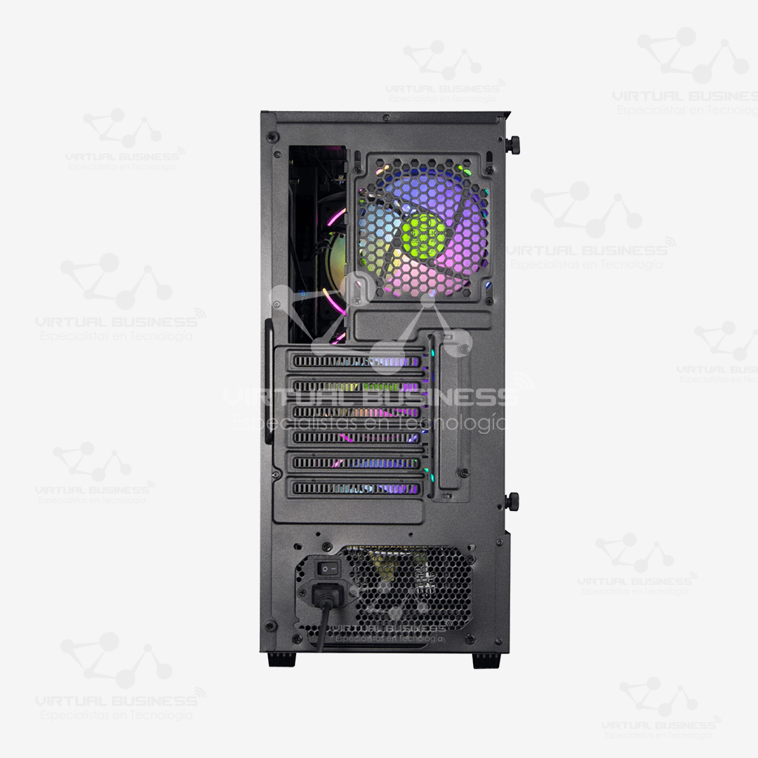 Equipado con tres ventiladores frontales y uno posterior de 120mm ARGB, el case garantiza una circulación de aire óptima para mantener los componentes a temperaturas adecuadas. Además, es compatible con sistemas de enfriamiento líquido en la parte superior (120/240mm) y frontal (120/240/360mm), ofreciendo opciones adicionales para una refrigeración avanzada.