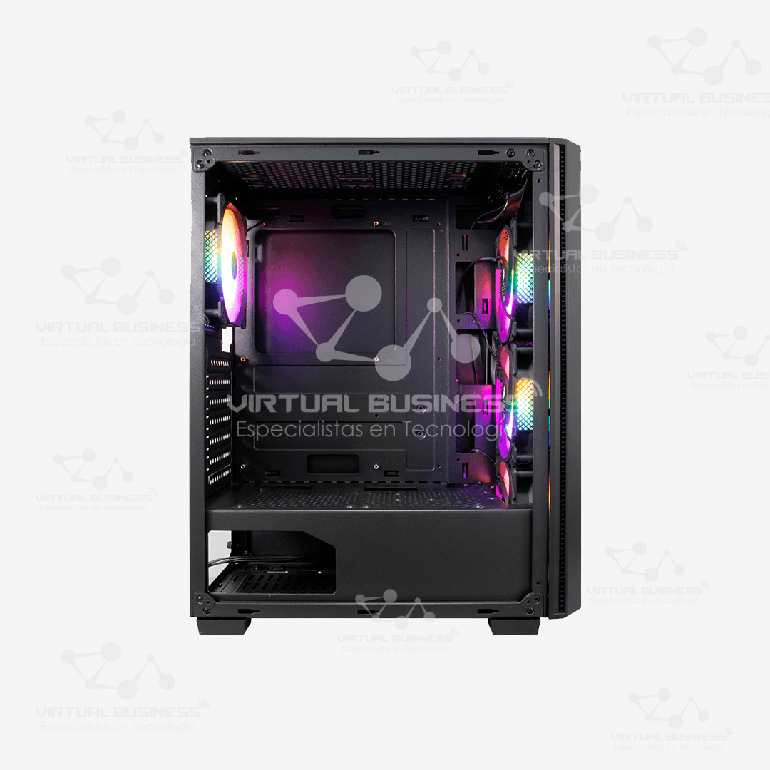 Este case soporta hasta 8 ventiladores, lo que asegura un flujo de aire adecuado para mantener los componentes frescos durante largas sesiones de juego. También es compatible con sistemas de refrigeración líquida, lo que mejora aún más el rendimiento térmico del equipo. El V4-G está diseñado para manejar el calor generado por los componentes de alto rendimiento y mantener la temperatura bajo control.
