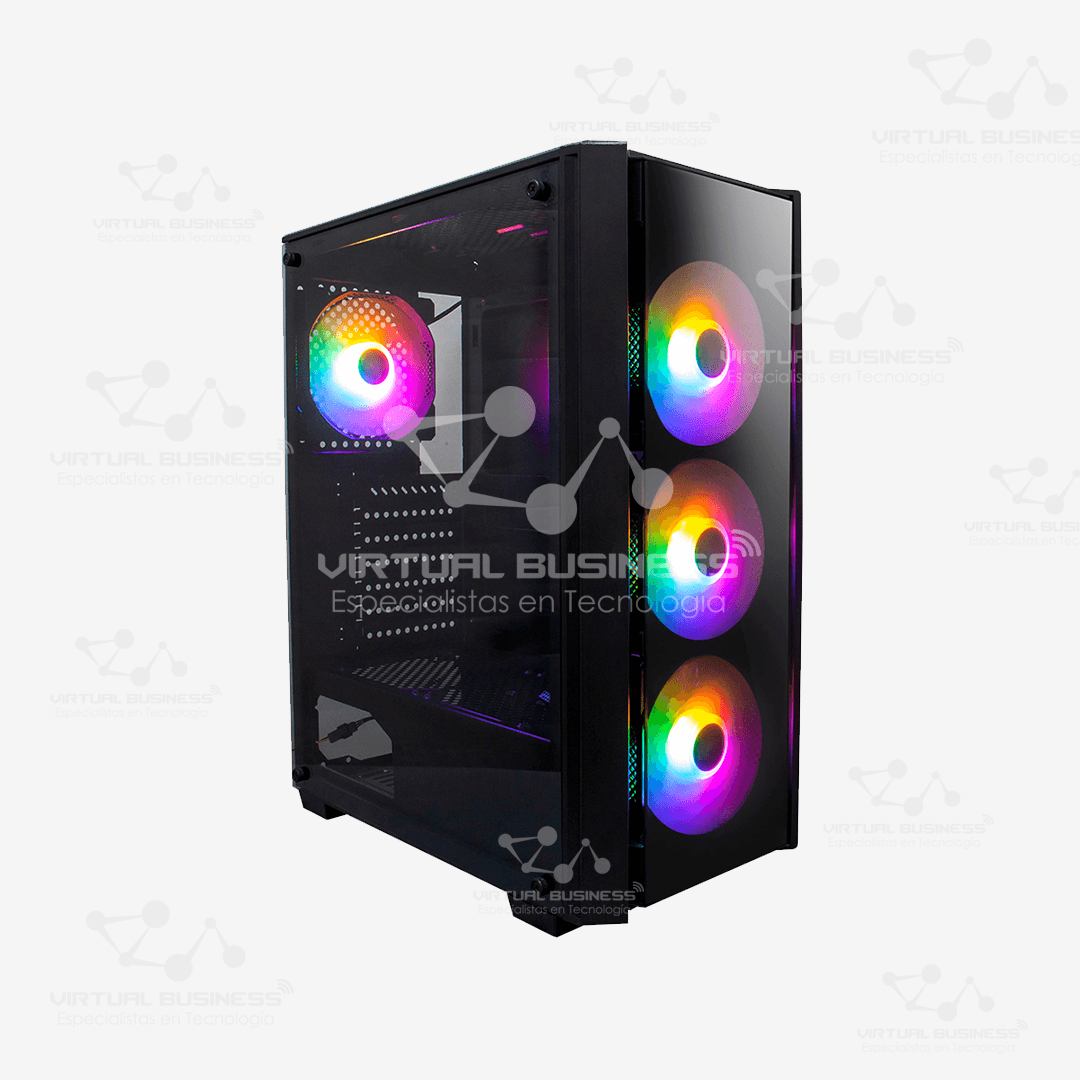 El 1st Player V4-G es un case gaming que equilibra perfectamente rendimiento y estética. Diseñado para gamers y entusiastas de PC, este case presenta un panel lateral de vidrio templado, lo que permite una vista clara de los componentes internos y resalta la iluminación RGB. El diseño robusto y elegante del V4-G lo convierte en una excelente opción para quienes desean un equipo tanto funcional como visualmente atractivo.