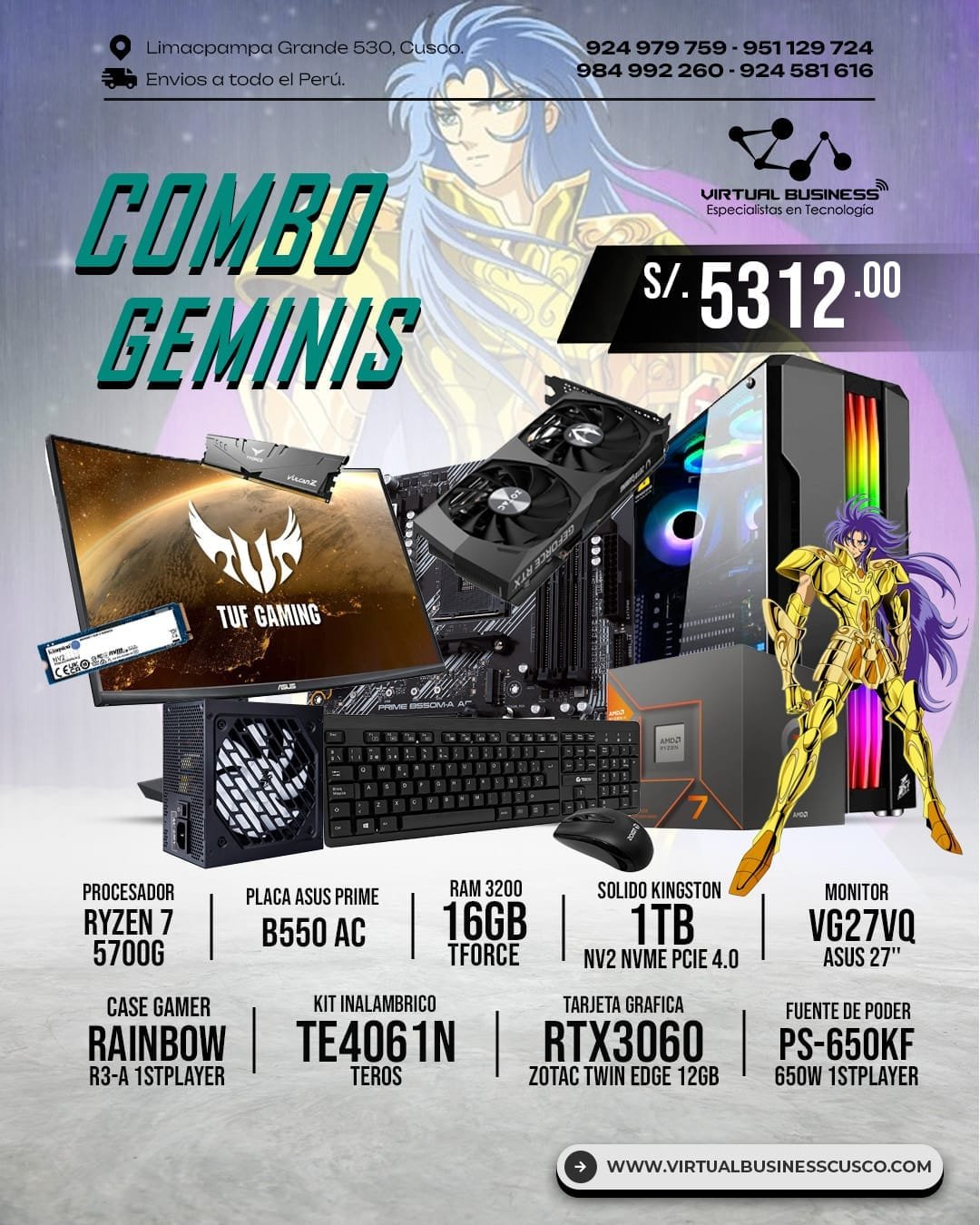 El Combo Gamer Géminis está pensado para quienes buscan un equipo de alto rendimiento que combine potencia, diseño y funcionalidad. Con tecnología de vanguardia y un diseño impresionante, este setup es ideal para disfrutar de juegos exigentes y realizar tareas multitarea sin limitaciones.
