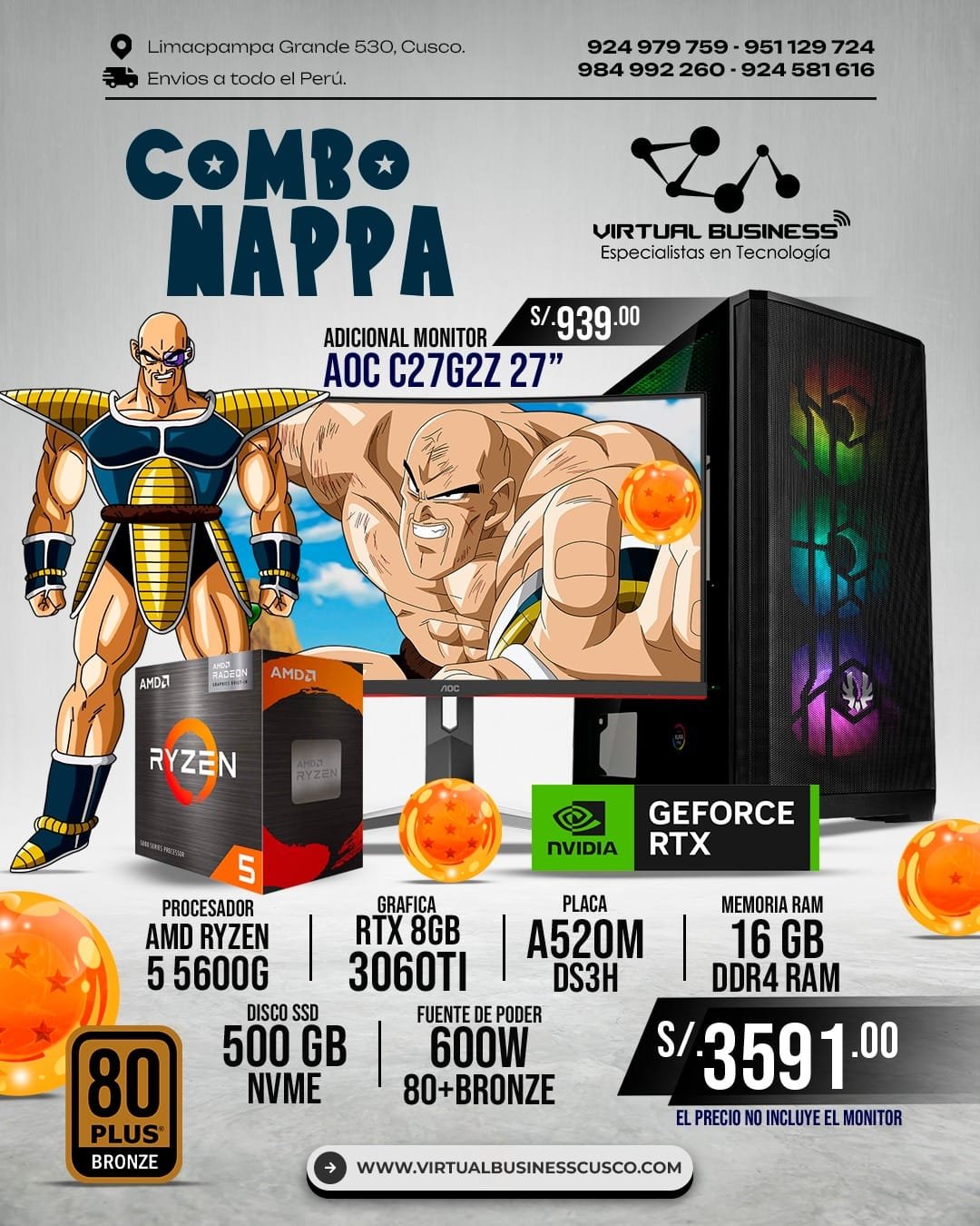 El Combo Gamer Nappa está diseñado para ofrecer un rendimiento imponente en juegos y tareas avanzadas. Una configuración que combina fuerza y estilo para los usuarios más exigentes.