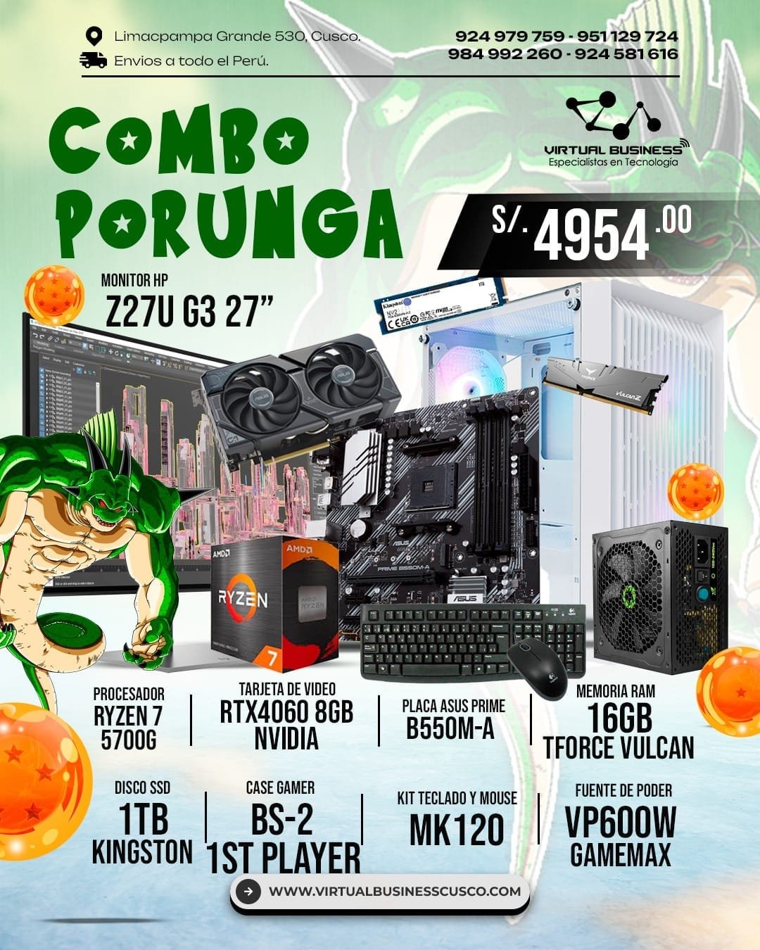 El Combo Gamer Porunga es la opción ideal para quienes buscan potencia y estilo en su equipo. Explora nuestra categoría de combos PC o consulta los detalles de los productos en sus respectivas páginas oficiales:
