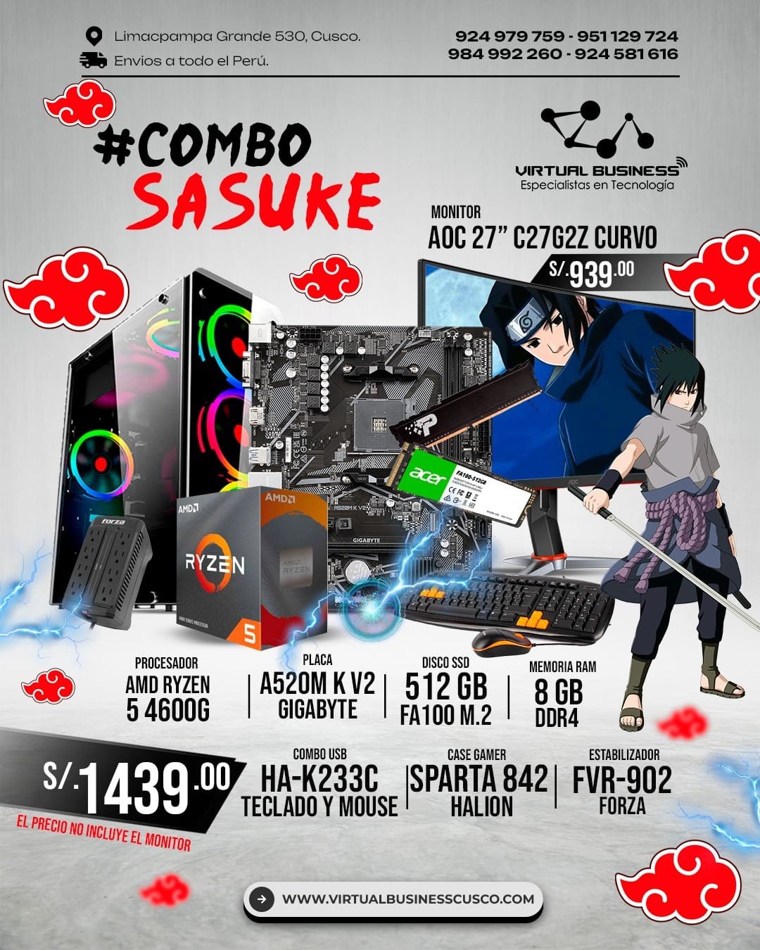El Combo Gamer Sasuke es perfecto para quienes buscan equilibrio entre rendimiento y estilo. Explora nuestra categoría de combos PC o consulta los detalles de los productos en sus respectivas páginas oficiales: