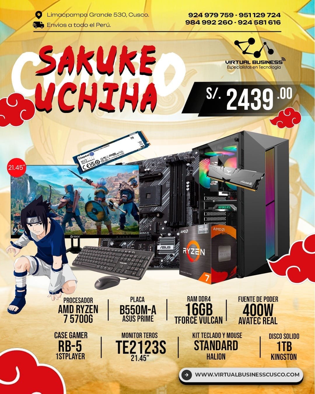 El Combo Gamer Sasuke Uchiha es la solución perfecta para quienes buscan potencia y estilo en su setup. Explora nuestra categoría de combos PC para más opciones, o consulta los detalles de los productos en sus respectivas páginas oficiales: