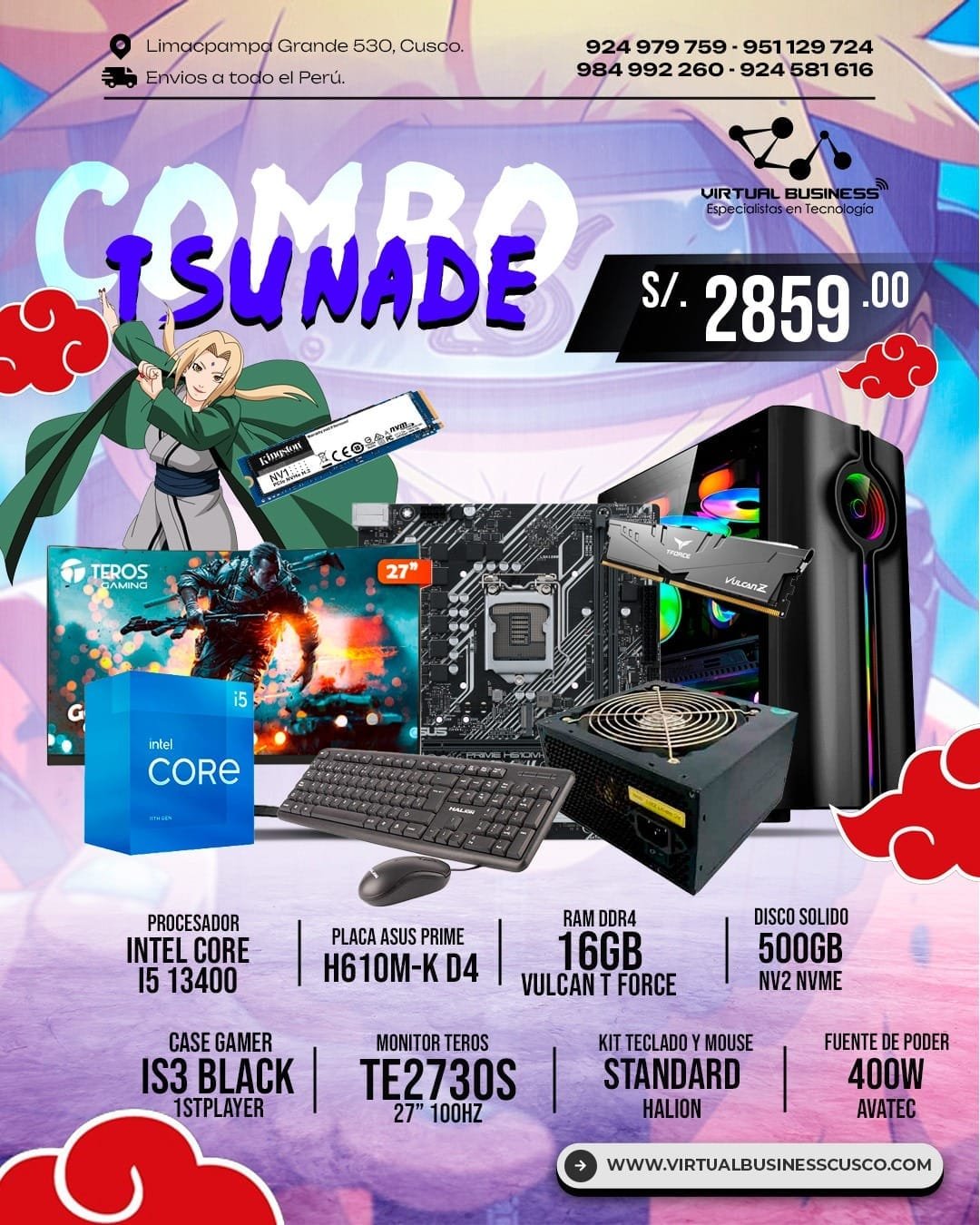 El Combo Gamer Tsunade es la elección perfecta para quienes buscan un equipo potente y confiable. Descubre más en nuestra categoría de combos PC o consulta los detalles de los productos en sus respectivas páginas oficiales:
