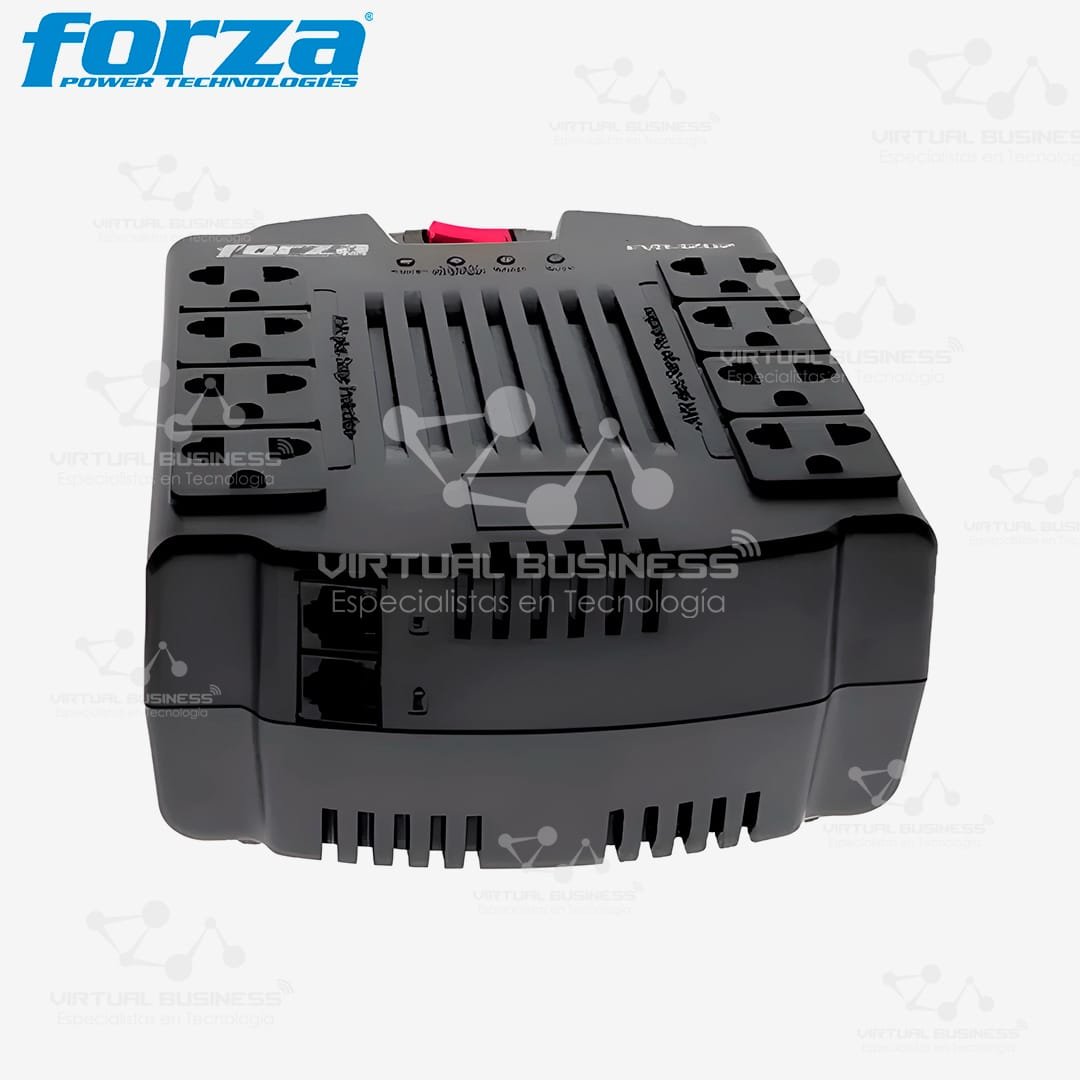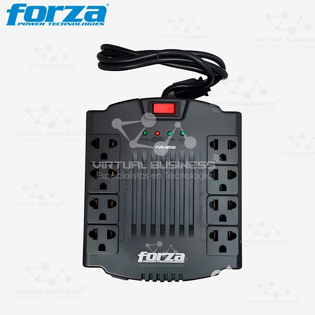 Estabilizador Forza FVR-1202 AC220V, capacidad de 1200VA, regulación automática de voltaje, protección contra sobrecargas y diseño compacto.