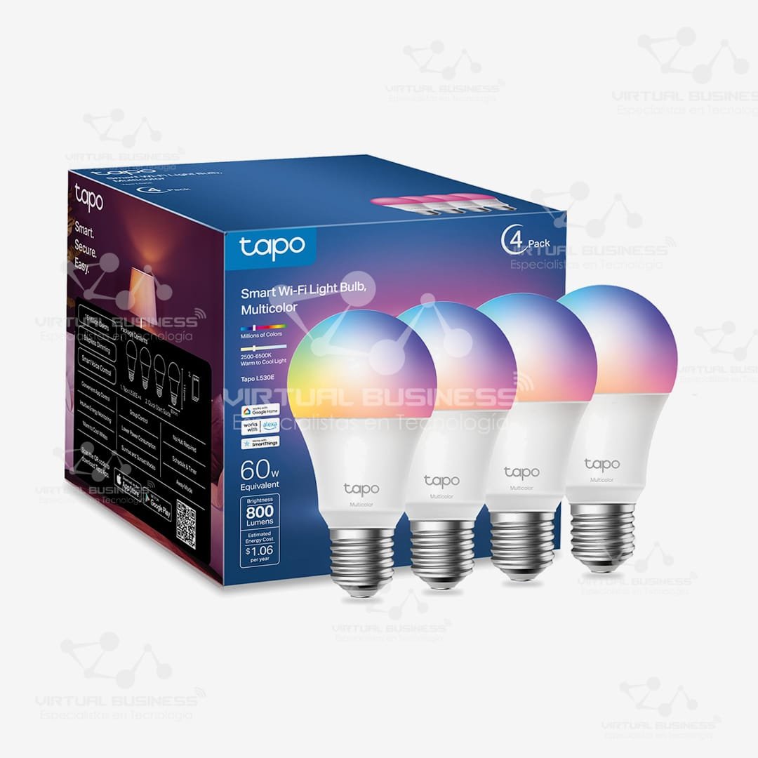 El Pack de 4 Focos Inteligentes Tapo L530E transforma tu hogar en un espacio conectado y lleno de color. Ideal para quienes buscan automatización, ahorro energético y control total de la iluminación desde el móvil o por voz.
