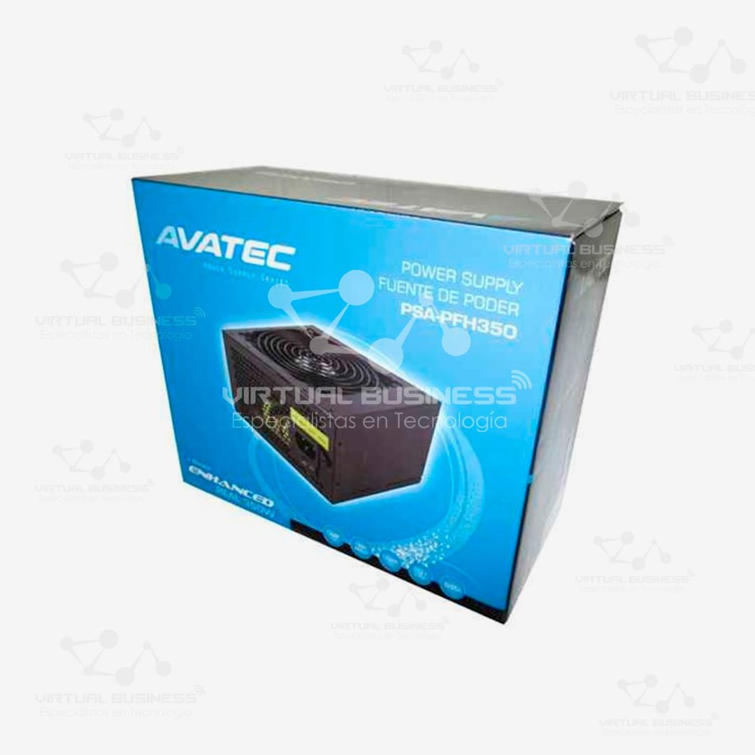 La Fuente de Poder Avatec PSA-PFH350 350W es una opción confiable y eficiente para PCs de uso básico y de oficina. Con 350W de potencia continua, es ideal para equipos que no requieren altos niveles de consumo energético, asegurando un funcionamiento estable y duradero.