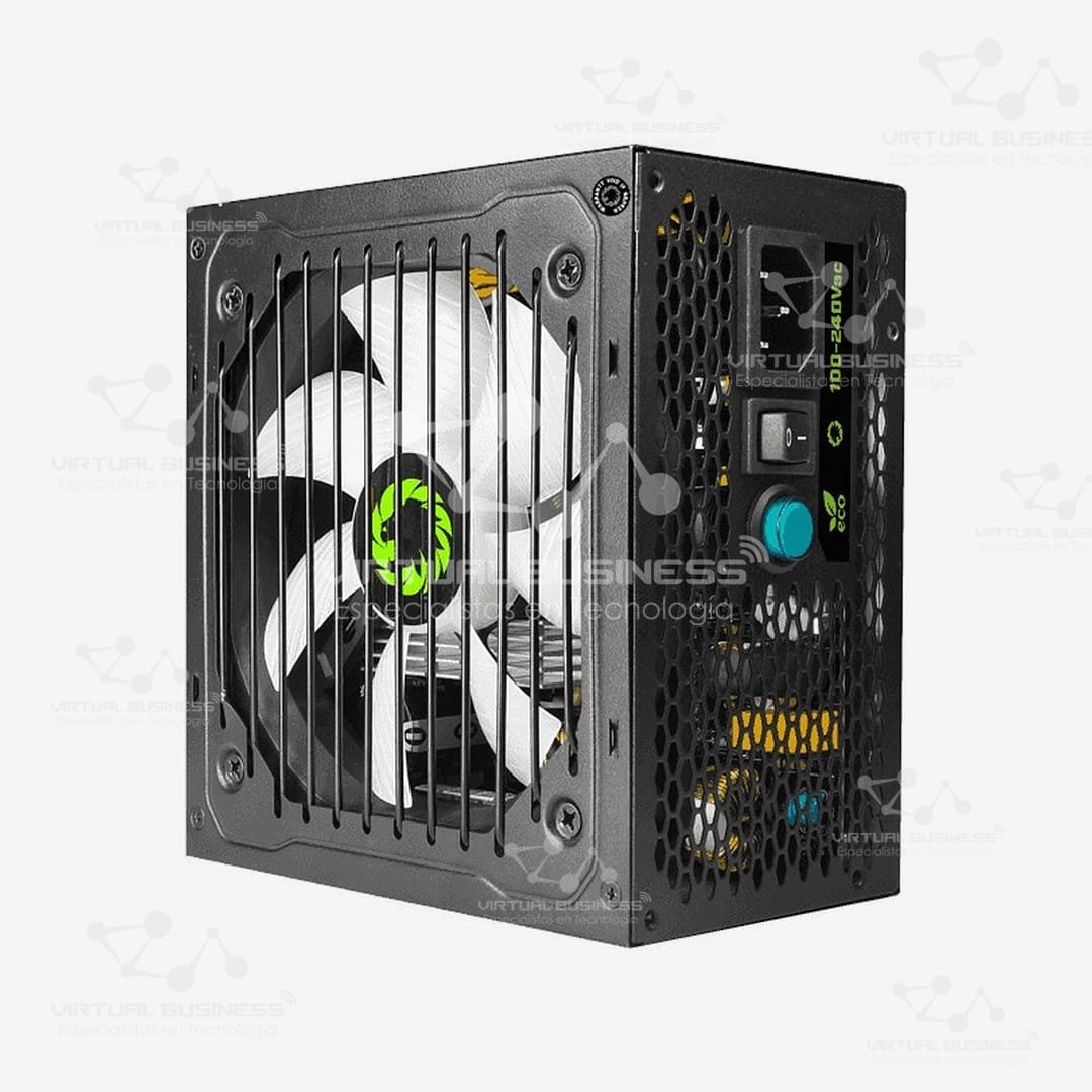 El ventilador asegura una buena refrigeración, manteniendo la fuente de poder en temperaturas seguras mientras opera de forma silenciosa. Esto es ideal para largas sesiones de juego o trabajo, proporcionando una experiencia libre de ruidos molestos.