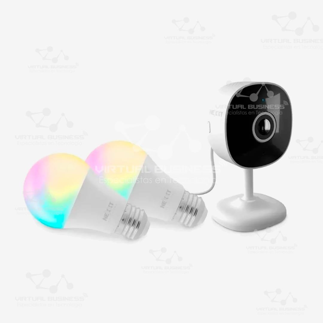 Nexxt NHK-K121: Kit inteligente con cámara de seguridad 2K y dos bombillas LED RGB. Controla tu hogar desde cualquier lugar con la aplicación Nexxt Home.