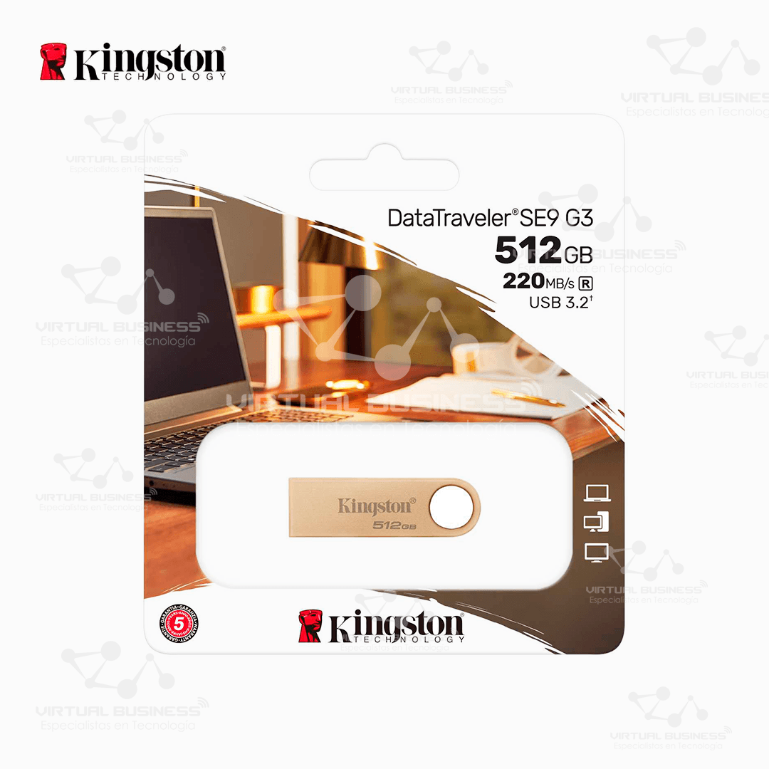 La USB Kingston SE9 G3 512GB combina estilo, velocidad y resistencia en un formato minimalista. Es una excelente opción para quienes buscan llevar grandes cantidades de información a donde vayan.