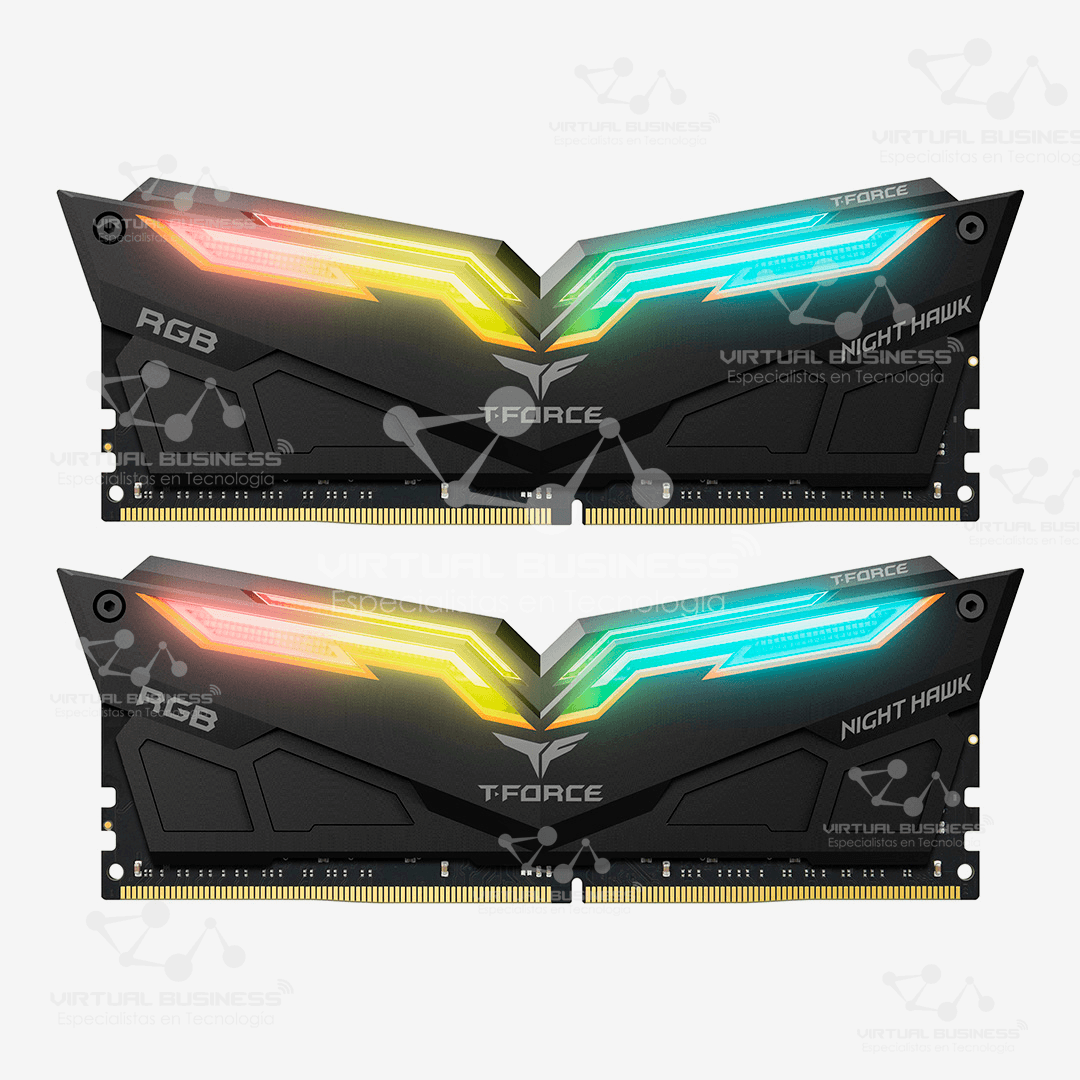 La MEMORIA RAM T-FORCE NIGHT HAWK RGB 16GB (2x8GB) DDR4 3600MHz es ideal para quienes buscan rendimiento y estilo visual. Esta memoria está diseñada para gamers avanzados y entusiastas del hardware. Con 16GB de capacidad y una frecuencia de 3600MHz, asegura un rendimiento rápido y estable, ideal para ejecutar juegos y aplicaciones intensivas sin comprometer la fluidez.