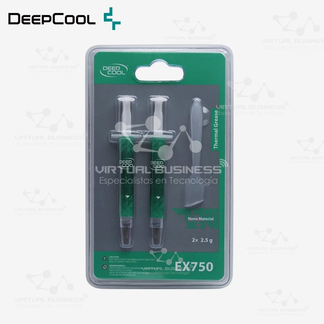 - Con una conductividad térmica de 6,2 W/m·K, la Pasta DeepCool EX750 mejora la disipación del calor. De este modo, mantiene los componentes fríos durante tareas exigentes, como el gaming.