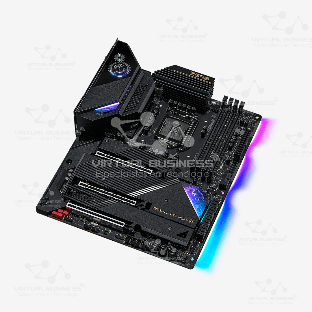 La ASRock Z590 Taichi es una placa base ATX diseñada para usuarios que buscan el máximo rendimiento. Compatible con procesadores Intel de 10ª y 11ª generación, esta placa ofrece una plataforma robusta para gaming extremo, creación de contenido y multitarea intensiva. El diseño elegante y las funciones avanzadas aseguran un rendimiento superior y estabilidad en aplicaciones exigentes.