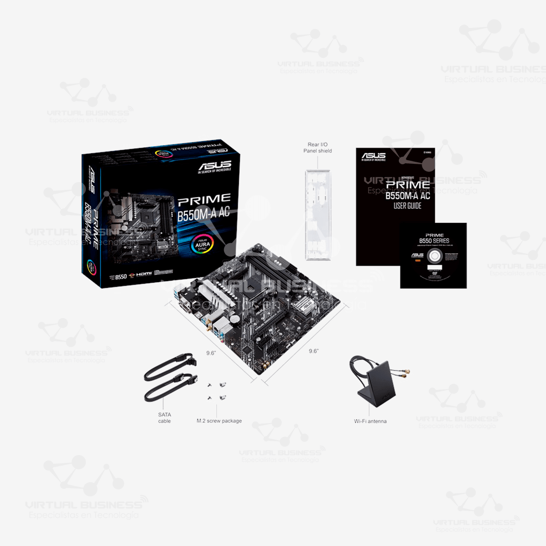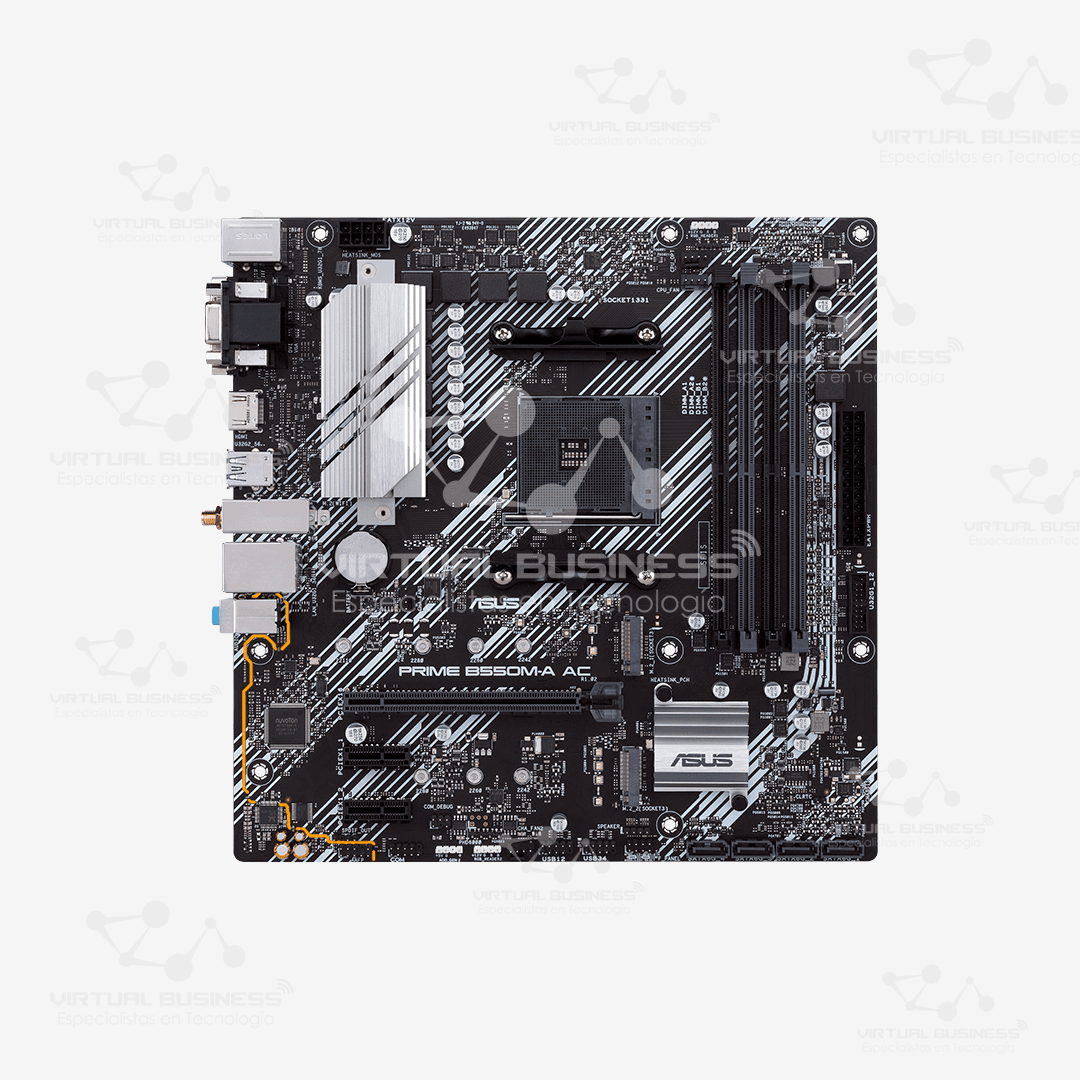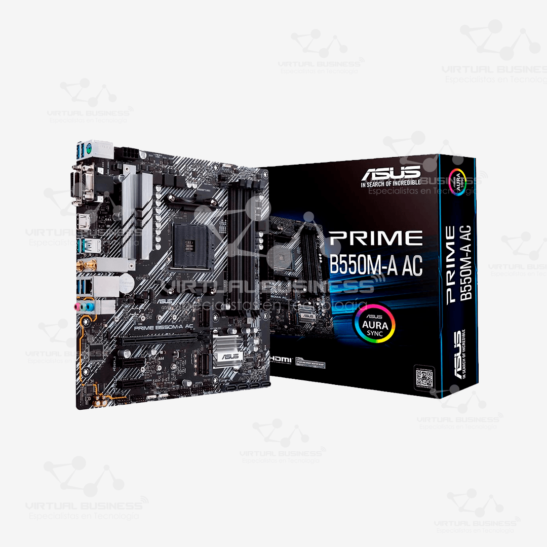 A pesar de su formato Micro-ATX, la PRIME B550M-A AC ofrece múltiples ranuras de expansión, como M.2 para almacenamiento ultrarrápido, y varios puertos USB 3.2 Gen 1, que facilitan la conexión de periféricos y dispositivos externos. Además, es compatible con ASUS Aura Sync, permitiendo a los usuarios personalizar la iluminación RGB de su sistema y sincronizarla con otros componentes compatibles.