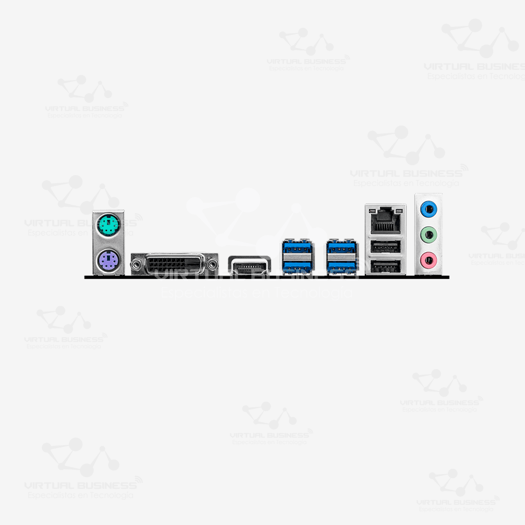 La placa base ofrece múltiples opciones de conectividad, incluidos puertos USB 3.2 Gen 1 que permiten transferencias rápidas de datos. También dispone de ranuras M.2, que proporcionan soporte para unidades SSD de alta velocidad, acelerando el arranque del sistema y reduciendo los tiempos de carga de las aplicaciones. Las salidas de video VGA y HDMI ofrecen flexibilidad para conectar diferentes monitores.