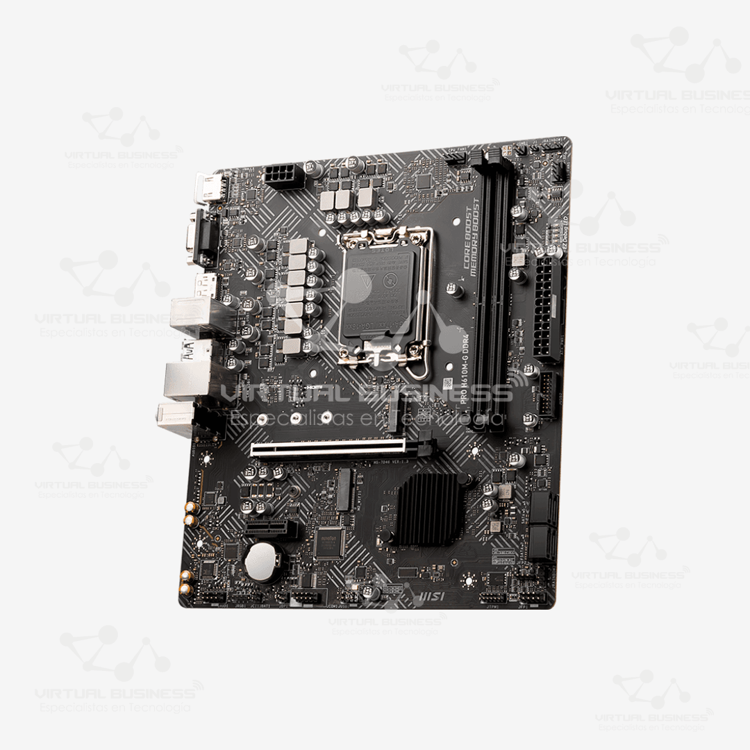 La MSI PRO H610M-G DDR4 es una placa base Micro-ATX que proporciona un rendimiento estable y eficiente. Está diseñada para trabajar con procesadores Intel de 12ª generación, por lo que es ideal para tareas cotidianas y de oficina. Además, su diseño compacto la convierte en una excelente opción para quienes buscan construir un PC funcional y asequible.