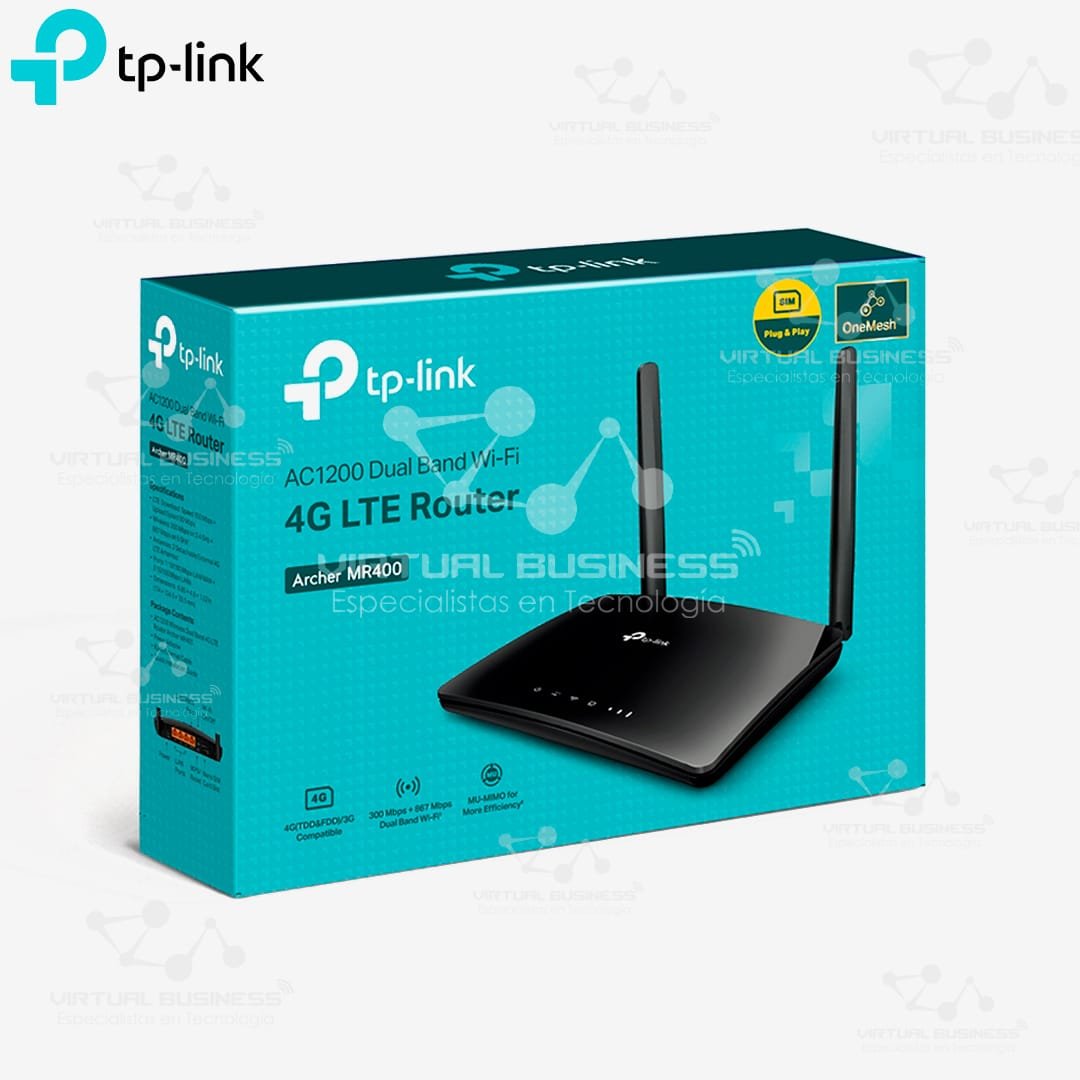 El Router Wi-Fi TP-Link Archer MR400 4G LTE Doble Banda AC1200 es la solución perfecta para garantizar una conexión a internet confiable y de alta velocidad en áreas donde no hay acceso a redes fijas. Con soporte para tecnología 4G LTE y Wi-Fi de doble banda, este router ofrece flexibilidad, rendimiento y una instalación sencilla.