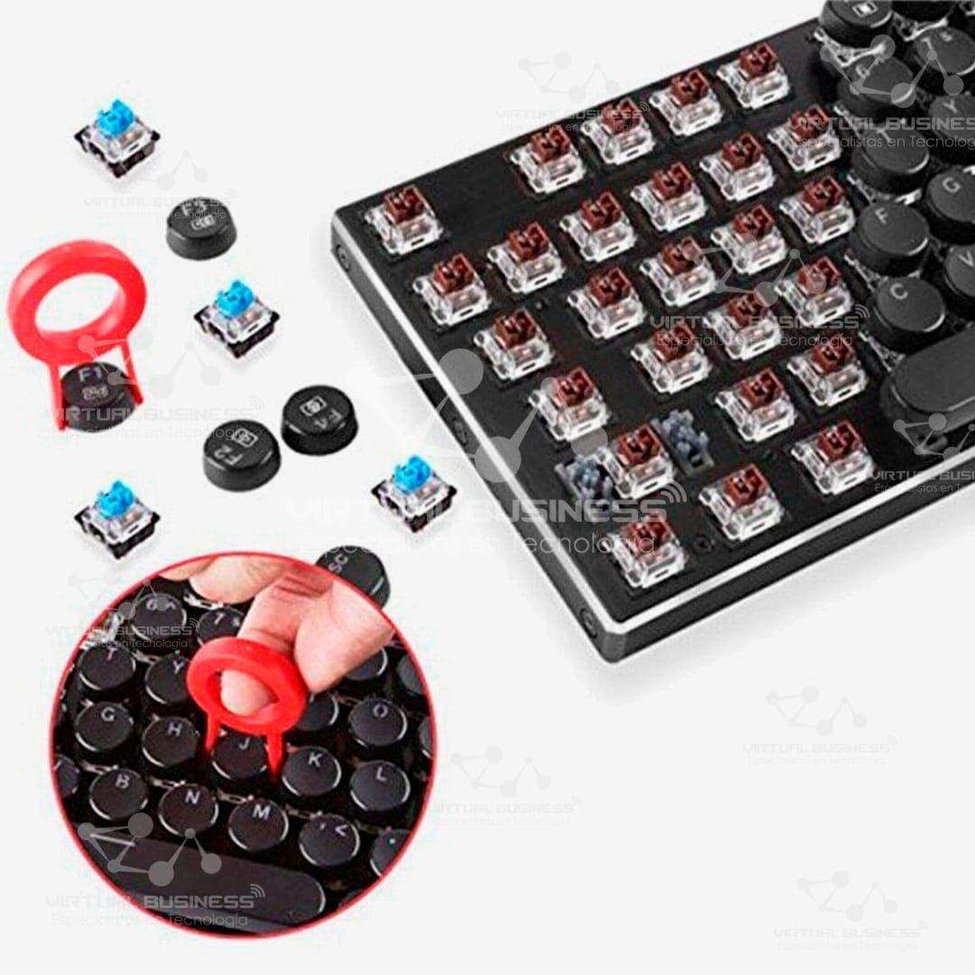 El set es compatible con teclados mecánicos que usan switches Cherry MX y similares, como Outemu, Kailh y Gateron. Esto asegura una instalación sencilla en diversos modelos.