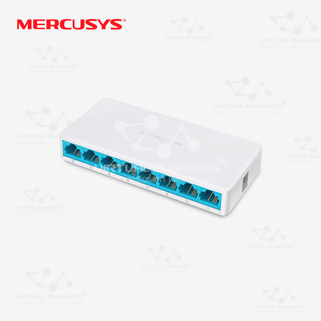 El Mercusys MS108 es un switch de escritorio con 8 puertos Fast Ethernet, diseño compacto, instalación plug and play y funcionamiento silencioso, ideal para expandir redes domésticas o de pequeñas oficinas.