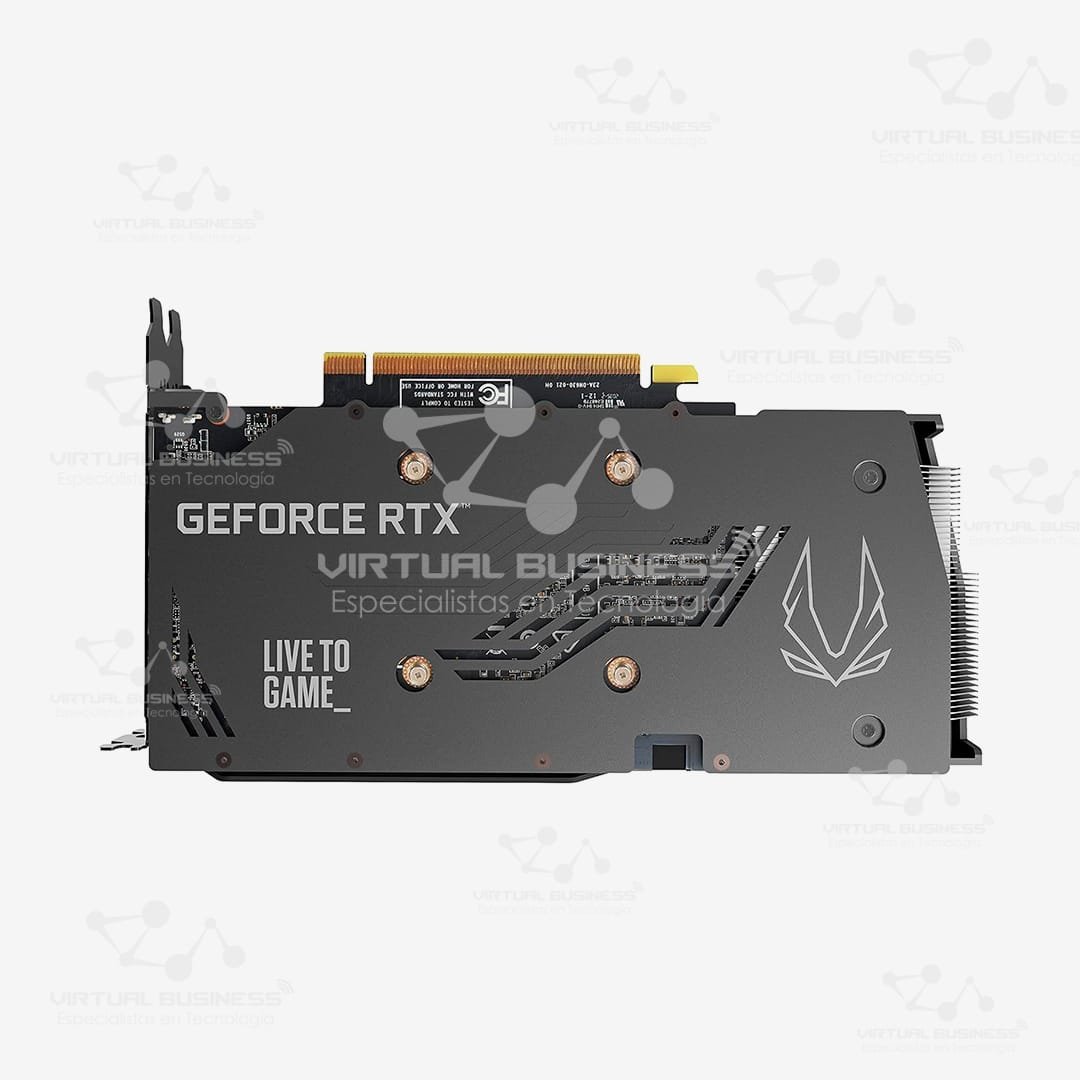 La ZOTAC RTX 3060 está equipada con un eficiente sistema de refrigeración que utiliza ventiladores dobles para mantener la tarjeta a temperaturas óptimas. Este sistema asegura una buena disipación del calor incluso durante largas sesiones de juego, garantizando un rendimiento constante y fiable sin riesgos de sobrecalentamiento.